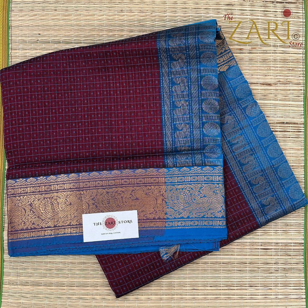 Handwoven silk mark certified ink blue with gold zari border Kanchipuram silk saree
